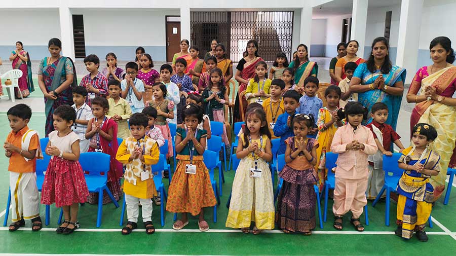 She hailed Kannada is not just a language but an emotion that connects hearts, and culture and a legacy that must be protected and passed on to the next generation. She congratulated the organizers and expressed her admiration for the way the school upholds and showcases Karnataka’s rich traditions such as the chende performance, the cultural welcoming of guests with jaggery water, the traditional ‘bagina’ (udi thumbisu) ceremony, and the attractive inauguration marked by the unveiling of the areca-nut flower. She highly praised the seamless blending of traditional customs with a modern educational environment. The celebration truly reflected the unity, pride, and cultural richness of Karnataka.