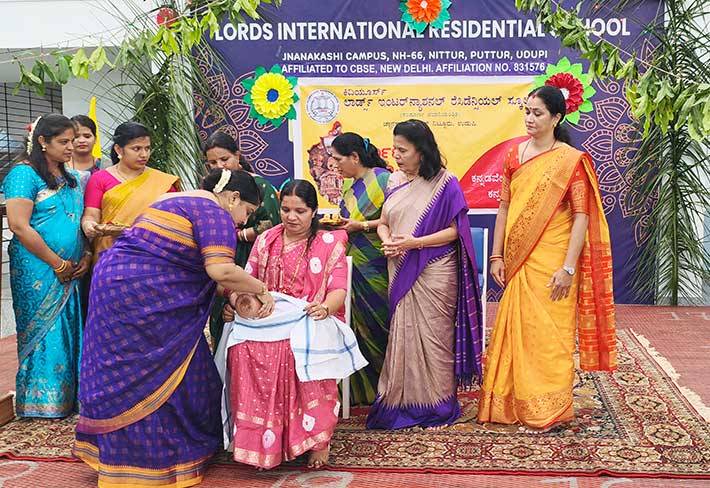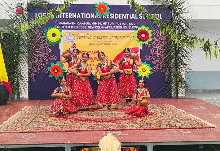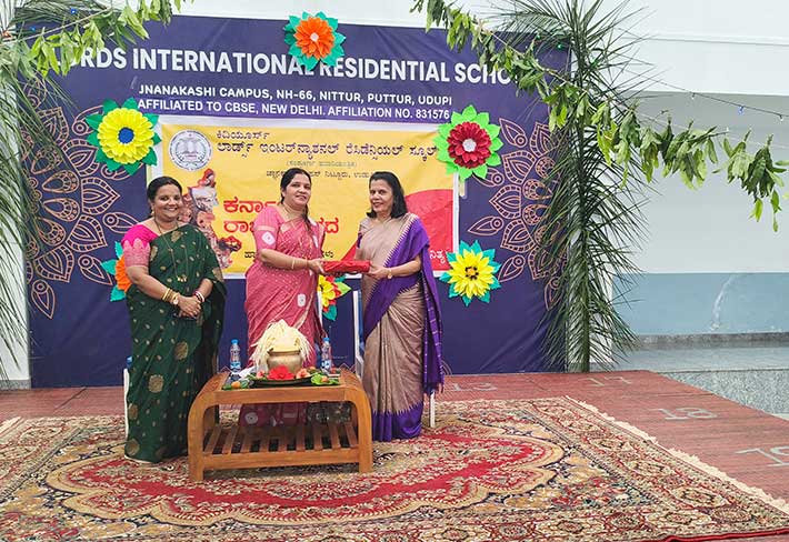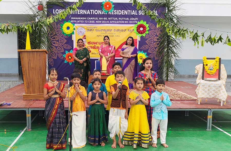 LORDS International Residential School (CBSE), Udupi joyfully celebrated Kannada Rajyotsava with the theme “Nadotsava”, honouring the rich culture, heritage, and pride of Karnataka. The event was graced by Mrs. Yashoda Keshav, Proprietor of Tulunada Dhwani Web News Channel, as the Chief Guest, and presided by Ms. Myrtel L. F. Lewis, Principal of the School. Students showcased the beauty of Kannada culture through their vibrant performances, including songs and dances that celebrated the spirit of Nadu and Nudi. The Chief Guest, Mrs. Yashoda Keshav was inspired to see the love for Kannada among all the students and teachers. Appreciated the enthusiastic performances, decorations, spirit of unity and respect for mother tongue.