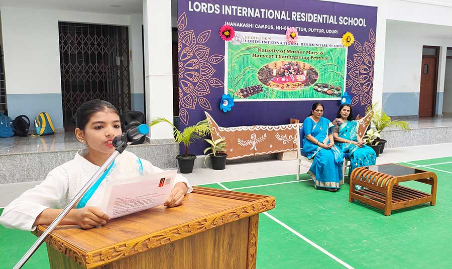 At Lords, we joyfully celebrated the Feast of the Nativity of Mother Mary & Harvest Thanksgiving Festival. The programme began with a soulful hymn sung by teachers invoking Mother Mary’s blessings, followed by a graceful dance by our students in her praise. Our Principal Ms. Myrtle L F Lewis, shared the significance of Mother Mary’s birth as a time of thanksgiving and gratitude. The celebration concluded with the sharing of sweets and sugarcane, spreading joy and blessings among our students.