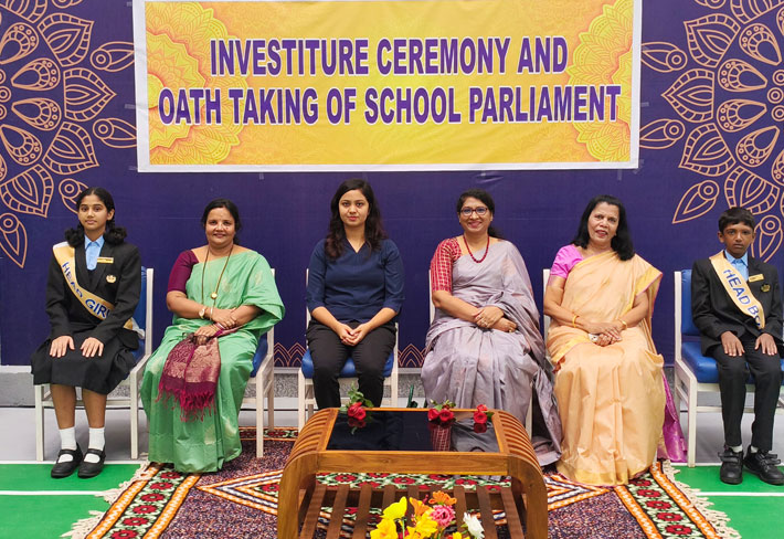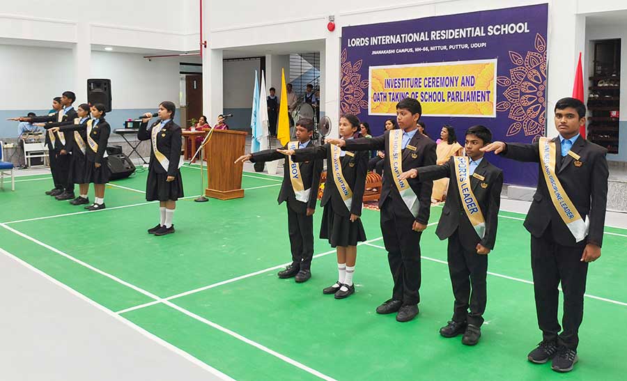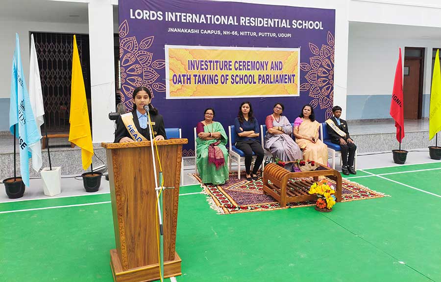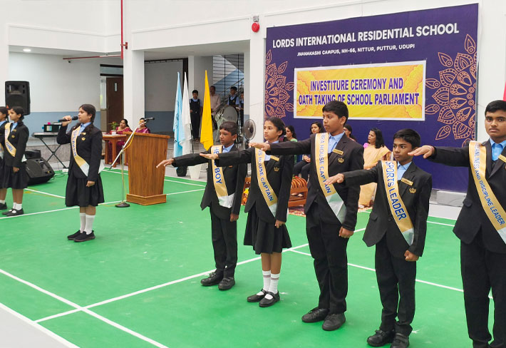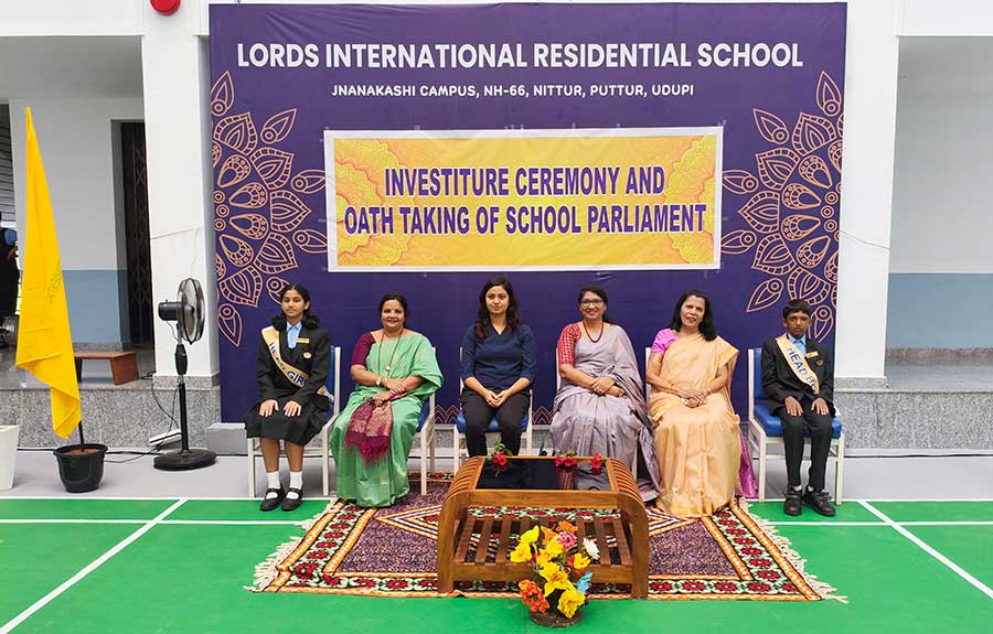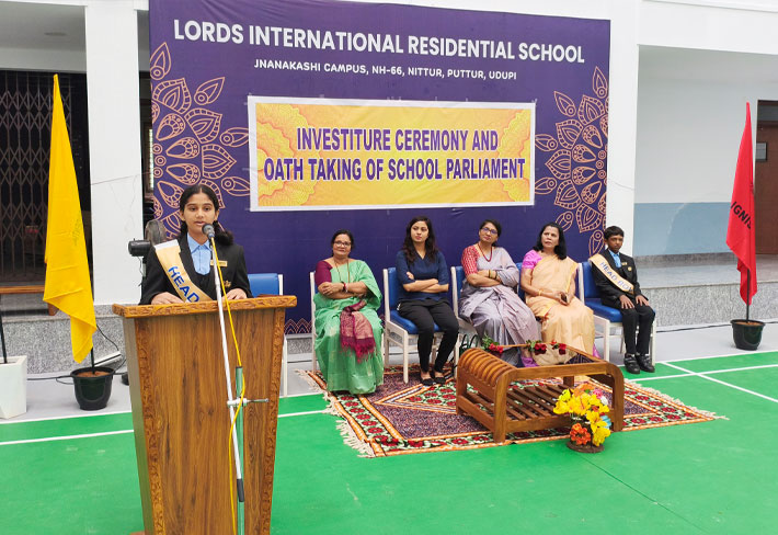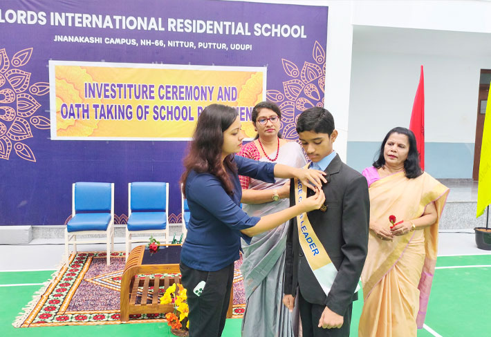 LORDS INTERNATIONAL RESIDENTIAL SCHOOL proudly hosted its first School Investiture Ceremony on 8th August 2025 at 9:30 AM in the school premises. The event was graced by the esteemed presence of Mrs. Thanuja Maben as the Chief Guest, along with Dr. Mrs. Bhavyashree Kidiyoor (Trustee), Principal Ms. Myrtle L F. Lewis, and Vice Principal Mrs. Roopa Ashok Shetty, who presided over the ceremony.
