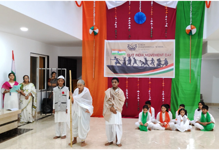Quit India movement was celebrated on August 8th to honour the spirit of sacrifices of freedom fighters. The students displayed a small skit related to quit India movement and a dance was performed to instil patriotism in their mind. This programme inspired the students to value justice, equality and nonviolence and also to honour the sacrifices of freedom fighters.