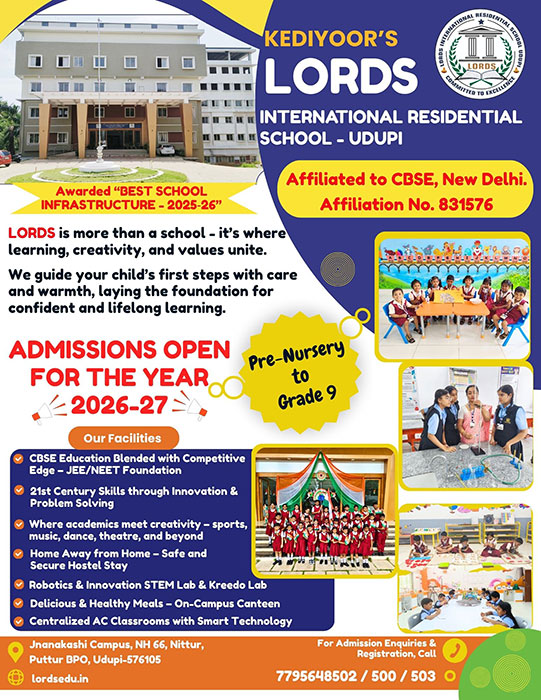 LORDS is a day cum residential, co-educational school which will be proposed to CBSE New Delhi, and is said to be one of the best schools in Udupi. Our emphasis lies in providing top-notch education complemented by a wide array of activities and nurturing well-rounded individuals. We prioritize instilling values, promoting research, fostering professionalism, and upholding discipline – fundamental attributes for today's world.