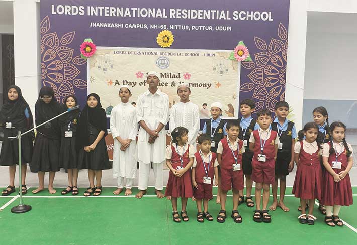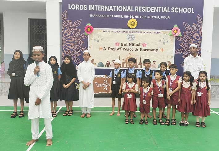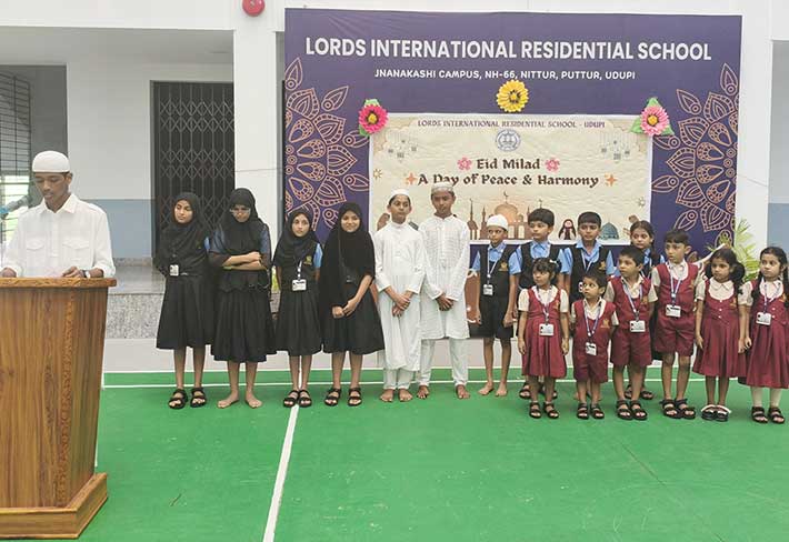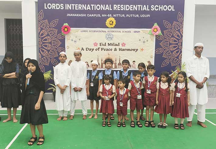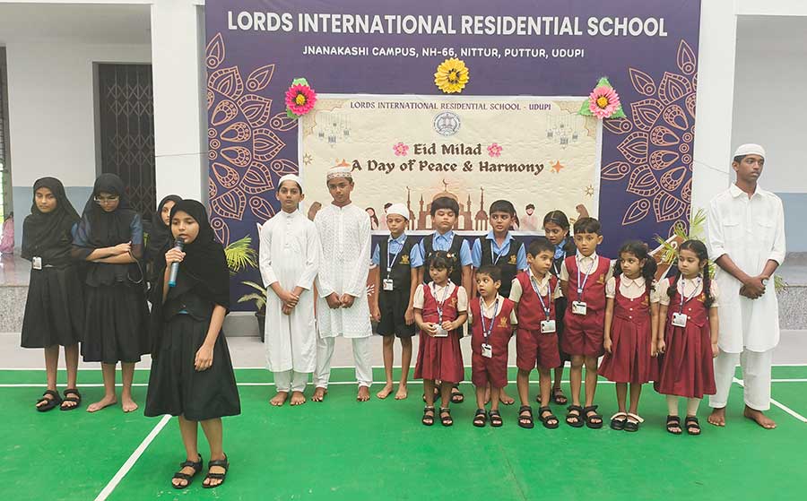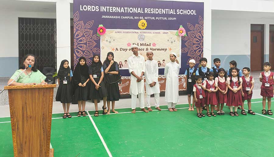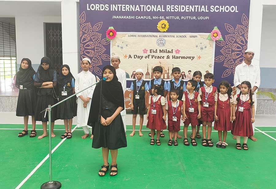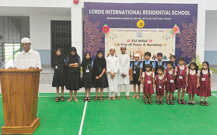 Eid Milad was celebrated with great joy and devotion at LORDS International Residential School on Thursday, 4th September 2025. The programme began with a prayer, followed by recitation from the Holy Qur’an by students. They beautifully shared the message of peace, kindness, and helping others. A melodious song and an inspiring speech by Hayath of Grade 8 highlighted the true spirit of Eid — love, gratitude, and unity. The Principal appreciated the students for their active participation and encouraged them to respect all cultures and religions. The event ended with the exchange of greetings and warm wishes among students. The celebration spread happiness and reminded everyone about the values of harmony and brotherhood.