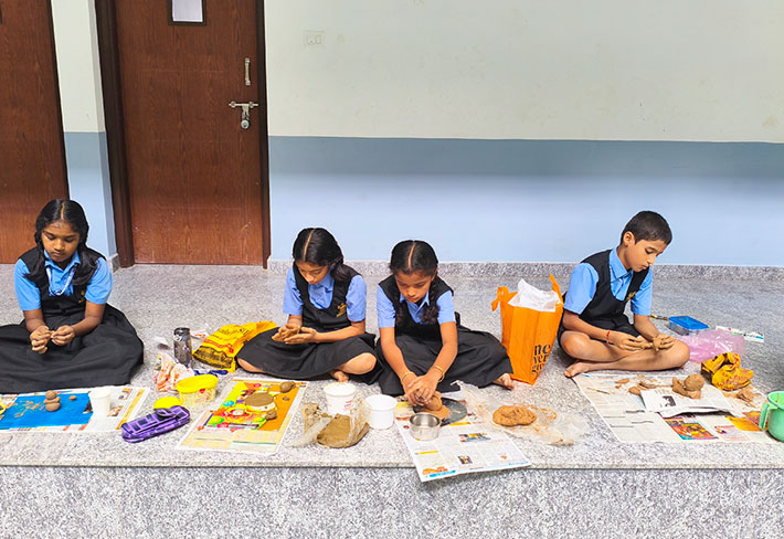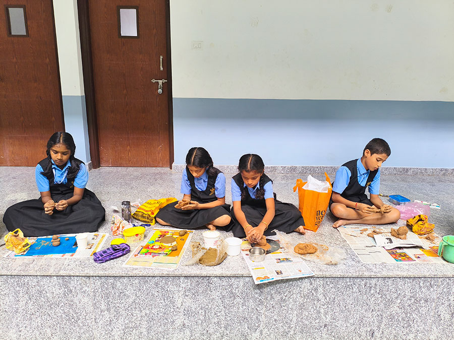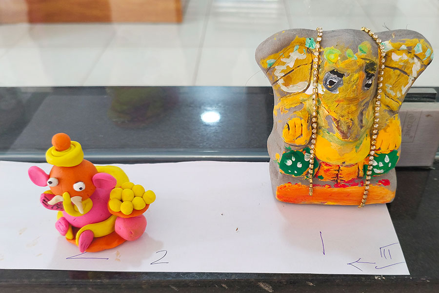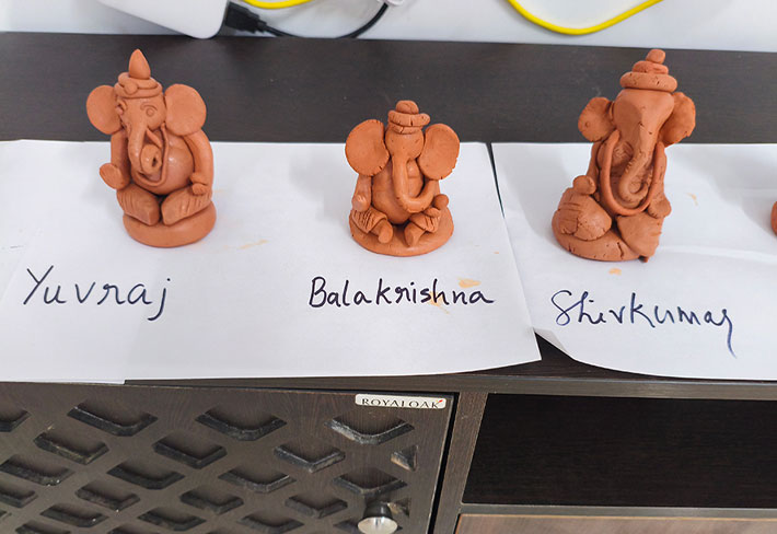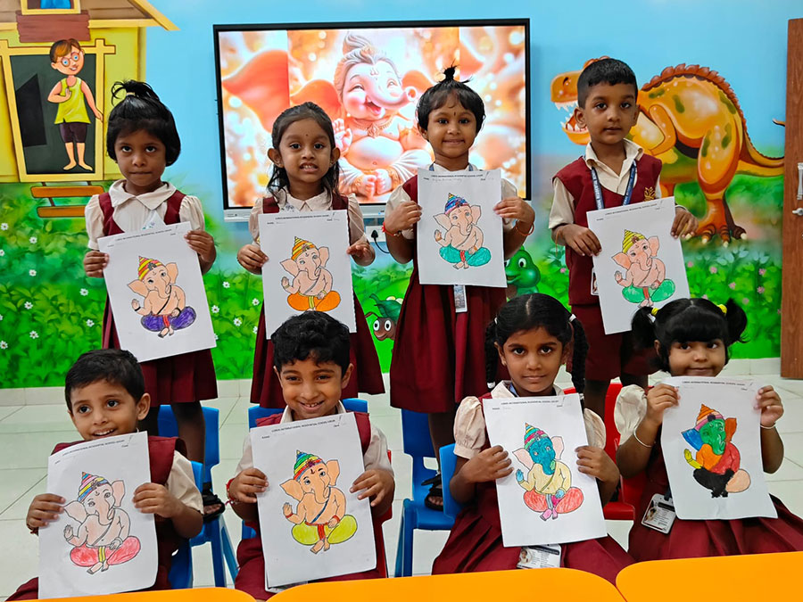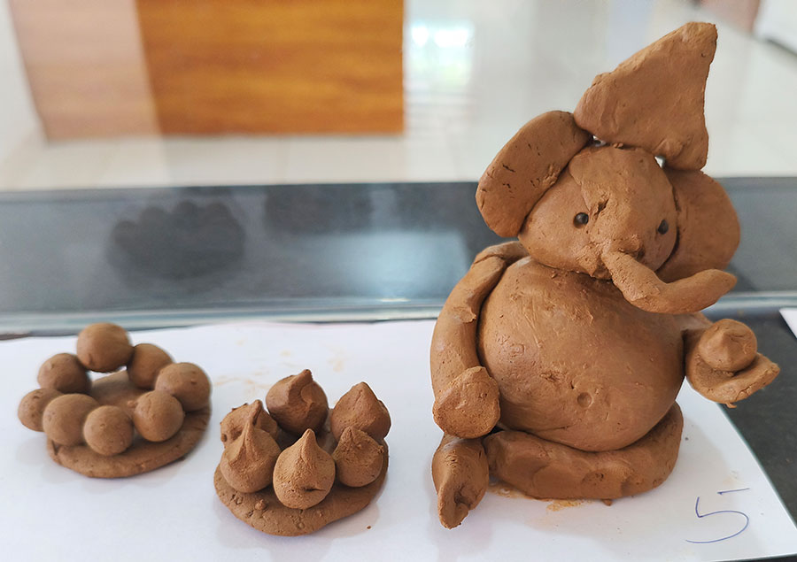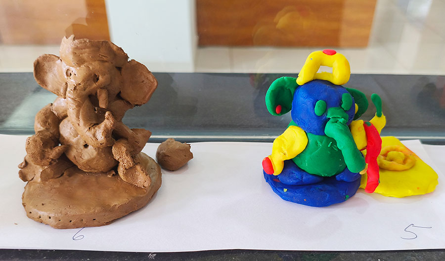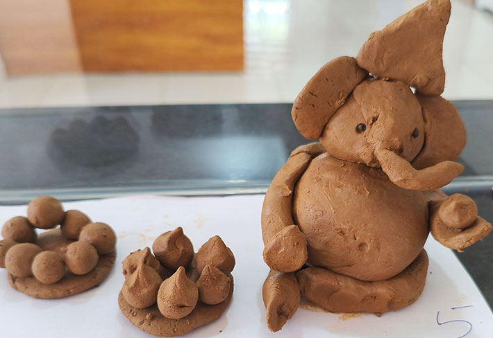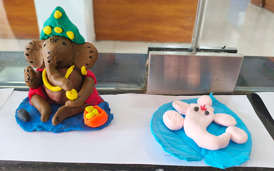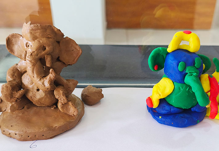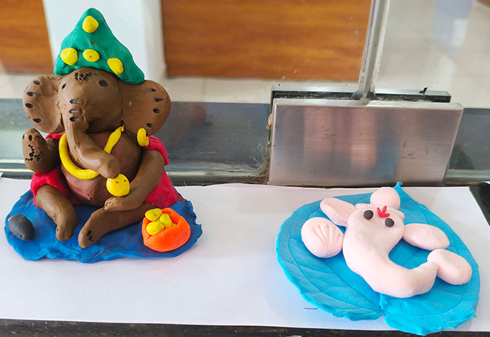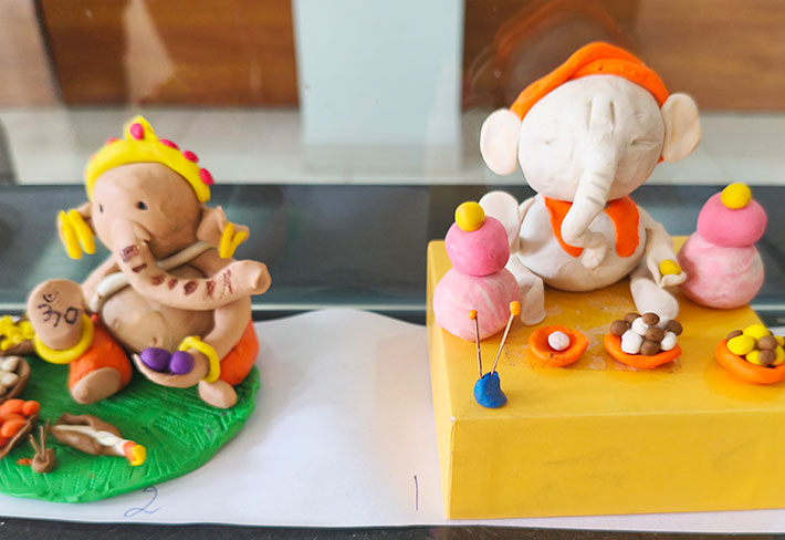 Students from the Kindergarten and Primary sections participated in a colouring activity of Lord Ganesha, filling their drawings with bright and vibrant colours. Students from Grades 4 to 9 took part in clay modelling creatively crafting their own Ganesha idols.