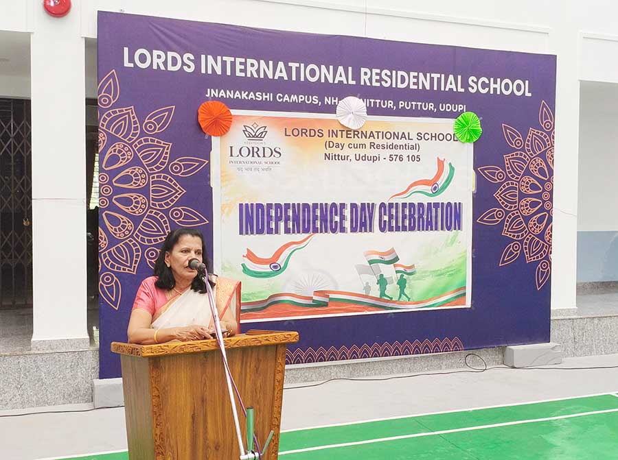 Independence Day LORDS International Residential School, Udupi, proudly celebrated Independence Day with great patriotism and joy. We were honoured to have Dr. Megha Pai – Senior Consultant Nephrologist, Adarsha Hospital, Udupi, as our Chief Guest, and Dr. Bhavyashree B. Kidiyoor – Treasurer & Trustee, Kediyoor Educational Trust (R), as the President of the programme.