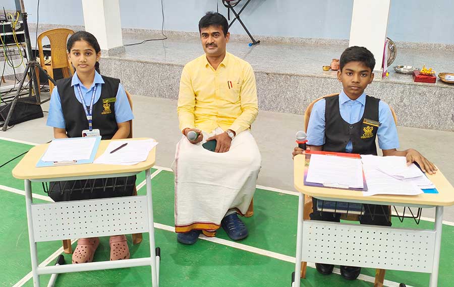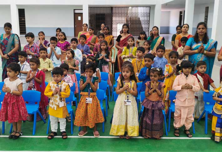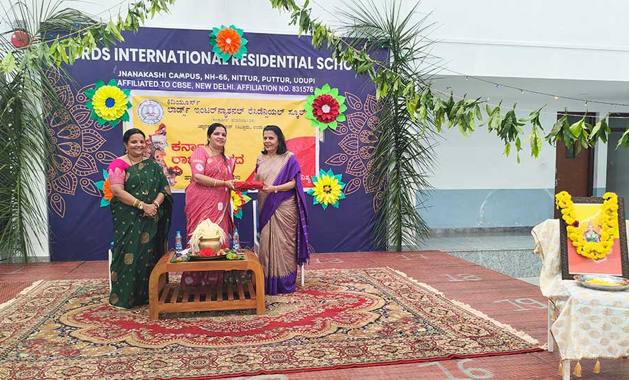 She hailed Kannada is not just a language but an emotion that connects hearts, and culture and a legacy that must be protected and passed on to the next generation. She congratulated the organizers and expressed her admiration for the way the school upholds and showcases Karnataka’s rich traditions such as the chende performance, the cultural welcoming of guests with jaggery water, the traditional ‘bagina’ (udi thumbisu) ceremony, and the attractive inauguration marked by the unveiling of the areca-nut flower. She highly praised the seamless blending of traditional customs with a modern educational environment. The celebration truly reflected the unity, pride, and cultural richness of Karnataka.