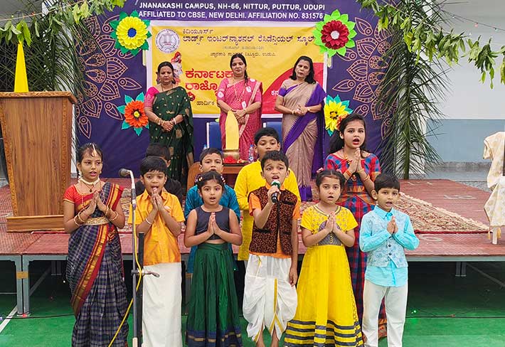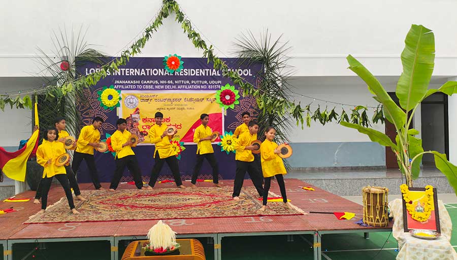 LORDS International Residential School (CBSE), Udupi joyfully celebrated Kannada Rajyotsava with the theme “Nadotsava”, honouring the rich culture, heritage, and pride of Karnataka. The event was graced by Mrs. Yashoda Keshav, Proprietor of Tulunada Dhwani Web News Channel, as the Chief Guest, and presided by Ms. Myrtel L. F. Lewis, Principal of the School. Students showcased the beauty of Kannada culture through their vibrant performances, including songs and dances that celebrated the spirit of Nadu and Nudi. The Chief Guest, Mrs. Yashoda Keshav was inspired to see the love for Kannada among all the students and teachers. Appreciated the enthusiastic performances, decorations, spirit of unity and respect for mother tongue.