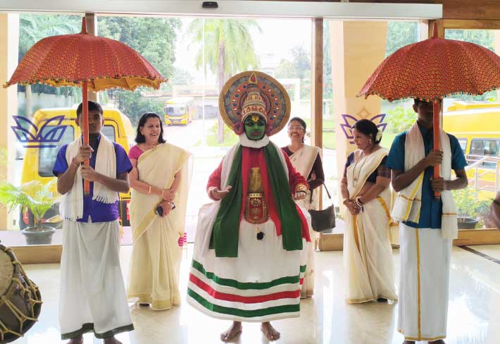 The celebration came alive with the vibrant Onam Pookalam, the rhythmic Chende with the umbrella procession welcoming the Guest, the graceful Thiruvathira, and the colourful Kathakali. Our teachers added extra charm to the occasion with a mesmerizing Thiruvathira Onam Dance.