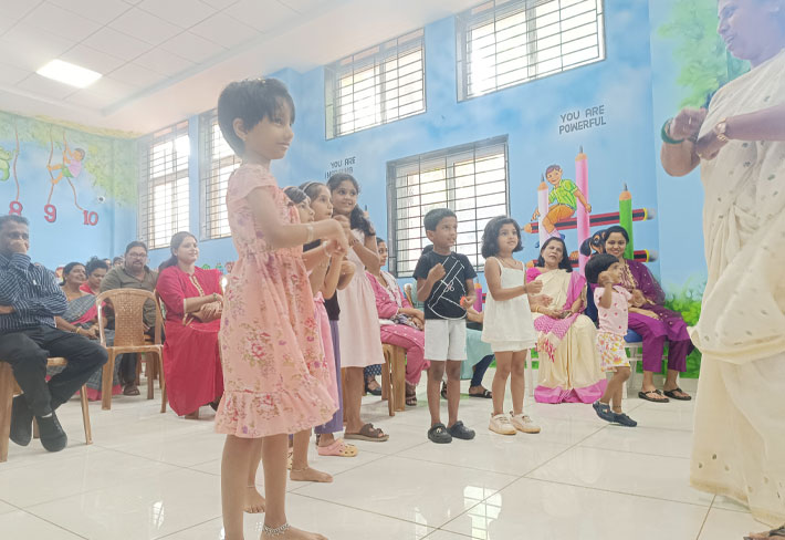 The experiential method of learning using Kreedo tools for the children of kindergarten and grade 1 and 2 students were demonstrated by the teachers followed by the entertainment programme by the teachers that included dance, song and skit.
