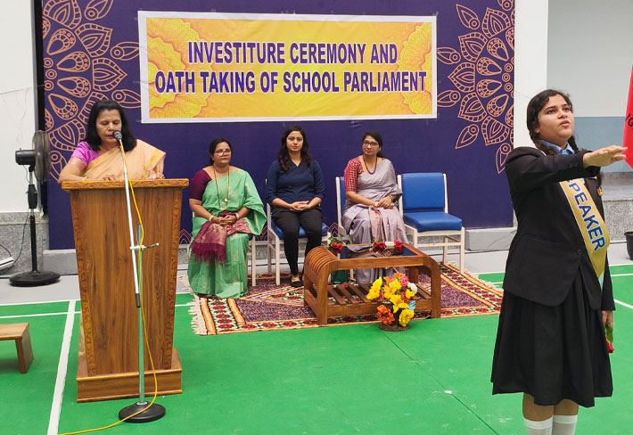The leaders were formally invested with sashes and badges by the Chief Guest. The oath of office was administered by the Speaker in the presence of the Principal, marking a solemn promise of commitment and service.