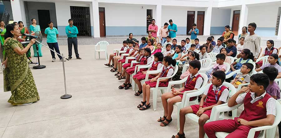 Principal Ms Myrtle L F Lewis addressed the students with a message of keeping the environment clean.